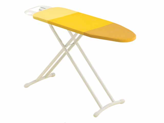 Gran plataforma recta en rejilla de 125×41 cm. Porta planchas de doble posición con cuatro protectores antideslizantes de silicona resistemtes a altas temperaturas. Sistema progresivo de regulación de altura hasta 95 cm. Patas de tubo ovalado reforzado sobre plataformas antideslizantes. Funda 100% algodón con muletón de 8mm.