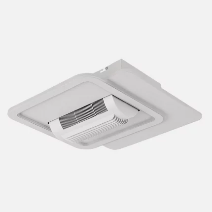 Plafón Ventilador cuadrado de la serie OBELISCO color BLANCO. De diseño muy moderno y original, realizado en metal y policarbonato.