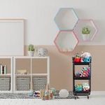 – Estructura metálica con 3 cestas de rejilla de plástico de 29x29x5,5 cm.