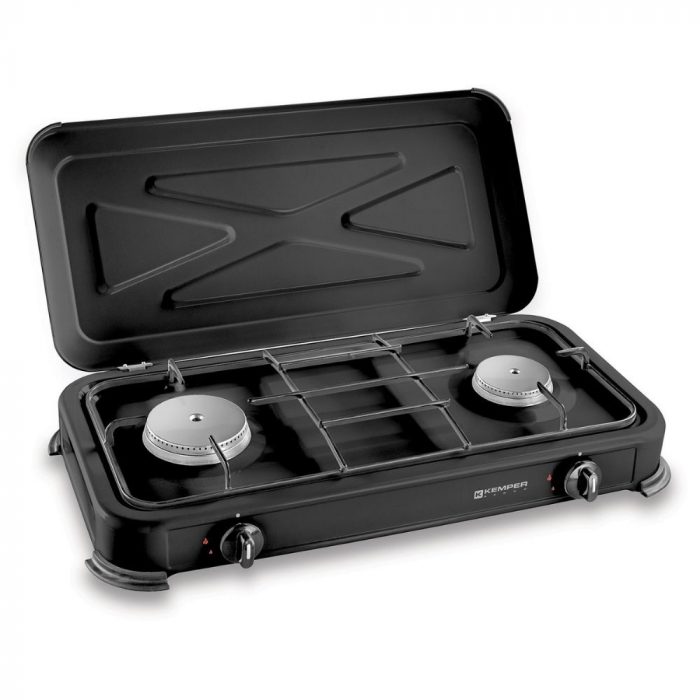 • Cocina de gas butano/propano de alta potencia, estable y robusta, con dos quemadores de acero inoxidable.