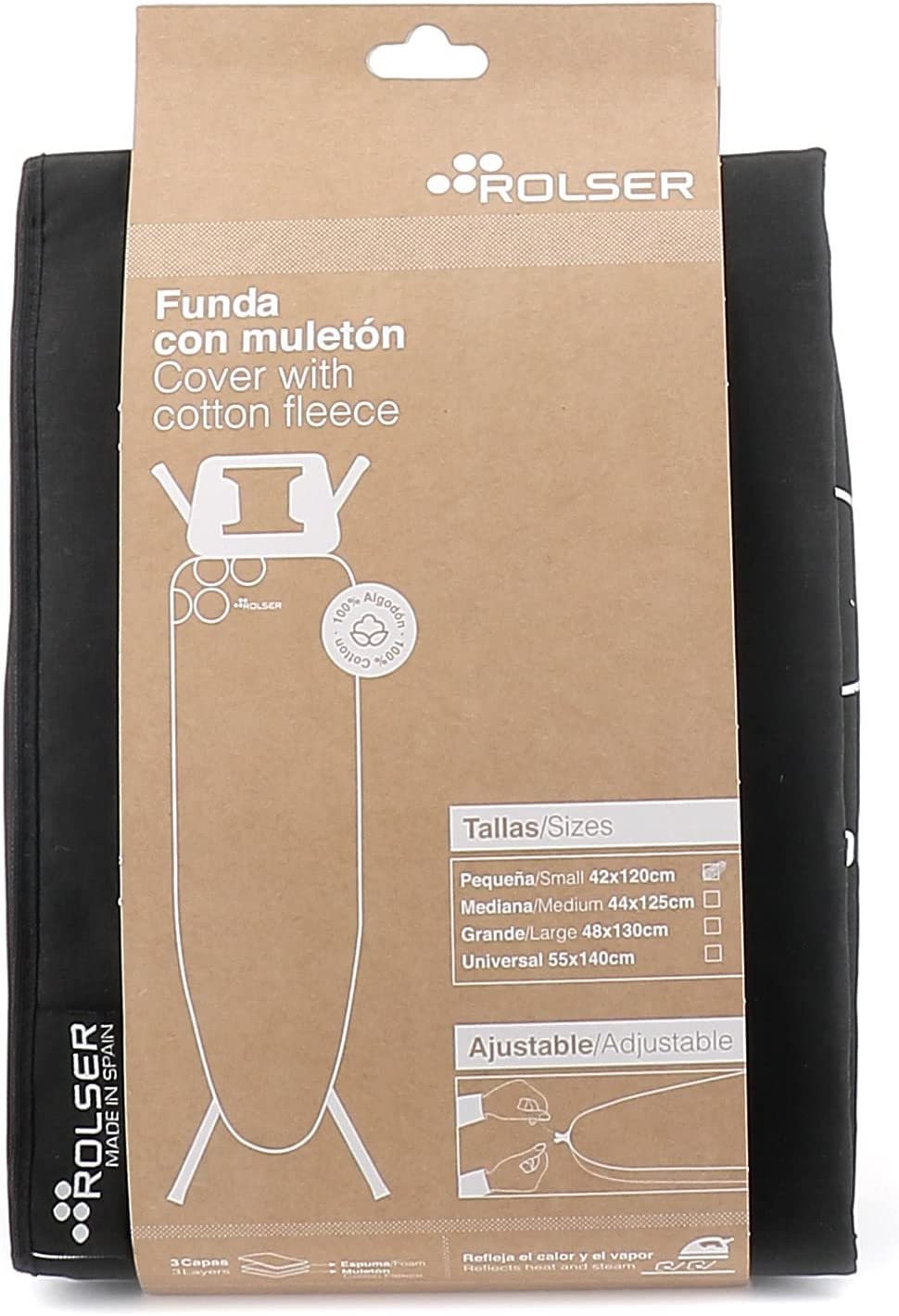 - FUNDAS ROLSER CON MULETON de 120×42 cm. Recambio original para las tablas de planchar Rolser K-S de 140×55 cm.