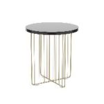 - Mesilla de diseño que combina la madera MDF de alta resistencia con una estructura de acero con su acabado especial antioxidación con un toque final en dorado.