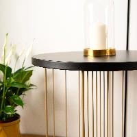 - Mesilla de diseño que combina la madera MDF de alta resistencia con una estructura de acero con su acabado especial antioxidación con un toque final en dorado.