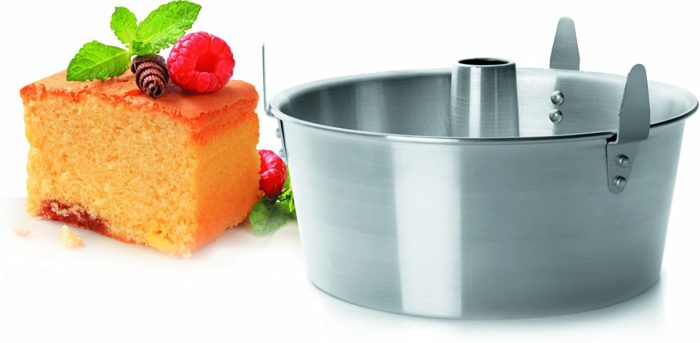 Hecho de material de aluminio pulido Con un diámetro de 25 cm y una altura de 14 cm En dos partes, con la columna central que se separa para facilitar la liberación de pasteles Es apto para el horno y el lavavajillas Con receta de Regalo