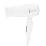 Secador de viaje plegable modelo Gallery de DCook Pequeño pero potente secador de pelo de 1400w de potencia En color blanco con detalles en rosa Dispone de 3 temperaturas siendo una de ellas aire frío Con boquilla concentradora desmontable para dar forma al peinado Rejilla extraíble para facilitar la limpieza y anilla colgador para tenerlo…