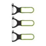 Set de 3 peladores del modelo Veggy de Quid Mango de plástico y acero inoxidable Tres peladores que se apilan y guardan juntos encajando en un bloque Cómodo y seguro en su uso porque la hoja afilada de acero inoxidable no está en contacto con la mano 3 tipos de hoja: lisa para las frutas…
