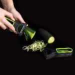 - 3 tipos de hoja: lisa para las frutas y verduras de piel dura (patatas, calabacines, manzanas…), serrada para las frutas y verduras de piel blanda (tomates) y en juliana