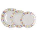 Compuesta por 18 piezas, incluye 6 platos llanos de 23 cm, 6 platos hondos de 20 cm y 6 platos de postre de 19 cm, ofreciendo el tamaño perfecto para una ración equilibrada.