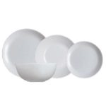 Vajilla de 18 piezas del modelo Lis de Bidasoa. Vajilla de 18 piezas de porcelana. Vajilla formada por seis platos llanos de 26,5 cm, seis platos hondos de 22,5 cm y seis platos de postre de 20 cm. Porcelana blanca de calidad resistente perfecta para el uso diario y fácilmente apilable. Acabado y blancura excepcional…