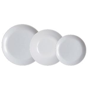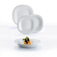 - Set formado por seis platos llanos de 25, seis platos hondos de 20 cm y seis platos postre de 19 cm
