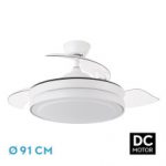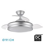 - Ventilador DC de la serie ESPARTA realizado en metal, policarbonato y ABS, en 3 colores, con tres aspas DESPLEGABLES de ABS transparente muy resistentes.