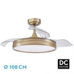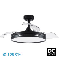 - Ventilador DC serie MICENAS realizado en metal, ABS y policarbonato, en color 4 colores, con tres aspas DESPLEGABLES en ABS muy resistentes.