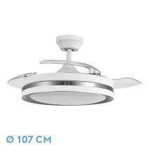 - Motor DC. Tecnología LED integrada con una potencia de 72W, 7200 lúmenes y 3 TEMPERATURAS SELECCIONABLES DE LUZ (3000-4500-6000K), luz cálida, luz natural y blanco frío.