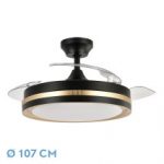- Control de aire verano o invierno. Su medida es de 36,5/49X49 centímetros con las aspas plegadas y de 36,5/49X107 centímetros con las aspas desplegadas, con DOS MEDIDAS DE TIJA para instalar a distintas alturas de techo.
