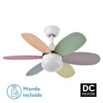 - Ventilador DC serie ALVES de color BLANCO con cinco aspas REVERSIBLES en color PASTEL/INTENSO y seis velocidades.