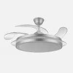 - Ventilador DC de la serie ESPARTA realizado en metal, policarbonato y ABS, en color BLANCO, NEGRO Y NIQUEL con tres aspas DESPLEGABLES de ABS transparente muy resistentes.