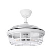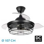 - Motor DC, tiene seis velocidades ajustables. De diseño moderno gracias a sus aspas desplegables, pero muy acorde con varios estilos de decoración desde el clásico al Frame House o incluso el Vintage, su terminación nos recuerda a las lámparas de cristal emplomado, resultando un elemento muy decorativo para salones, dormitorios, comedores y zonas de trabajo, pudiendo usarse conjuntamente o indistintamente como lámpara o ventilador dependiendo de las necesidades de la estancia.